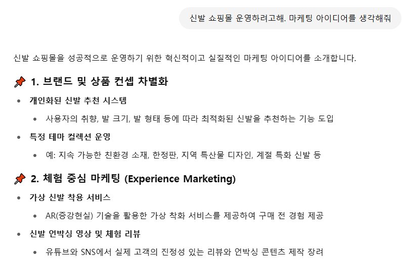 유튜브 영상 대본, 블로그 초안, SNS 문구 생성 등 다양한 콘텐츠 제작에 활용할 수 있습니다. - 다양한 분야에 실험해보기