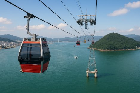 여수 바다 위를 가로지르는 해상 케이블카는 필수 코스입니다.